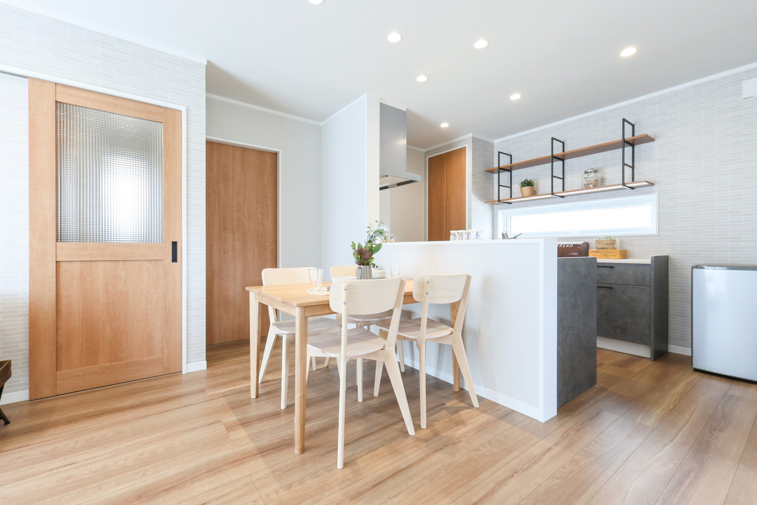 自室とリビングをキッチンで繋ぐ「らくらく動線」平屋