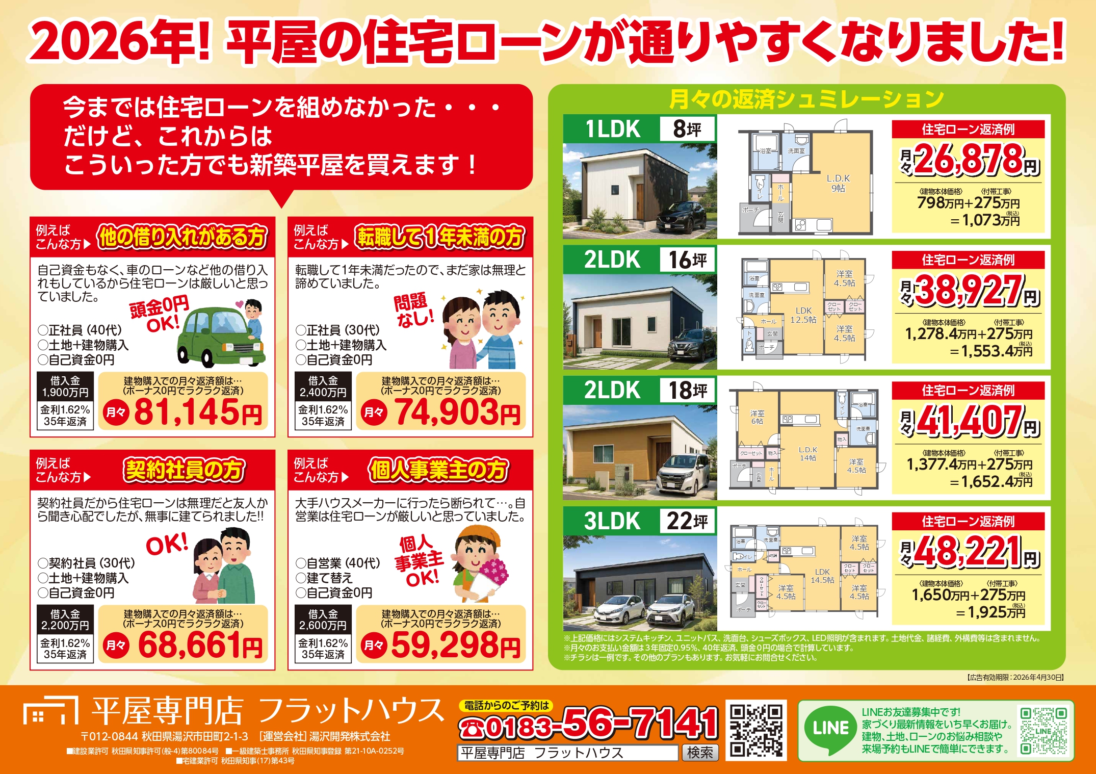 横手市八幡 平屋モデルハウス 見学会を開催致します!1人・2人暮らしで今まで戸建てを諦めていた方必見の平屋モデルハウス